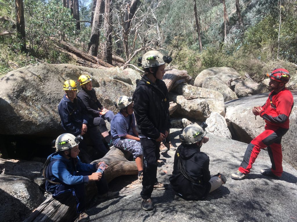 How do we run it: After abseiling into Burston’s Crevasse Canyon on a 40m descent we squeeze through caves, descend crevasses, rock climb a steel wire ladder and much more. Students will learn about safety, teamwork, the techniques needed to perform all skills and tasks properly and efficently, and have fun!